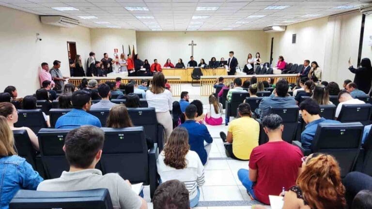 Na noite de quinta-feira (5), acadêmicos do 2º ao 10º período do curso de Direito da Univale participaram, de um júri simulado no fórum da Comarca de Ivaiporã. O evento teve como tema um caso real de 2003, envolvendo homicídio qualificado por motivo torpe e ocultação de cadáver na cidade de Jardim Alegre.