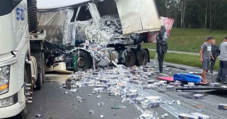 Dois caminhões se envolveram em um acidente na manhã deste domingo (14) na BR-116, no Contorno Norte, sentido São Paulo. A batida foi no quilômetro 82, região de Piraquara, Região Metropolitana de Curitiba (RMC).