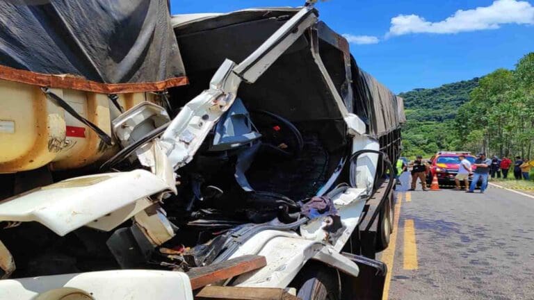 Segundo a Defesa Civil, os dois caminhões estavam carregados com massa asfáltica. O motorista do segundo veículo que bateu na traseira do outro caminhão ficou preso às ferragens por cerca de três horas e teve ferimentos graves na perna direita.