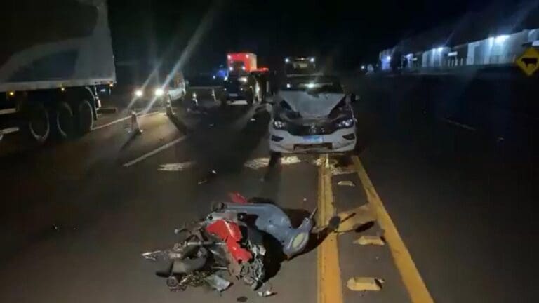 Uma motocicleta Honda Biz e um automóvel Fiat Cronos com placa de Londrina colidiram na PR-444 na altura do KM 33. A condutora da moto, uma mulher de 41 anos, morreu no local.