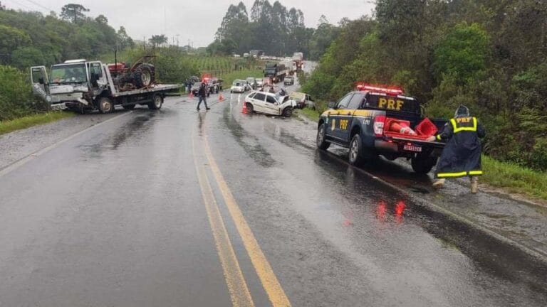 Um grave acidente envolvendo três veículos deixou uma pessoa morta e outra ferida na BR-153, em Rebouças-PR, na quarta-feira (09). De acordo com a Polícia Rodoviária Federal (PRE), a tripla colisão ocorreu por volta das 15 horas na altura do Km 348.