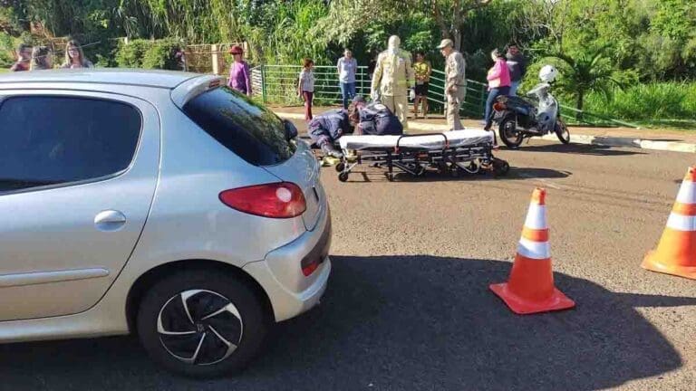 O acidente envolveu uma motocicleta Honda C100 Biz e um Peugeot 207, ambos com placas de Ivaiporã.