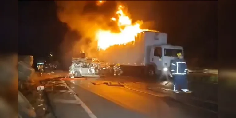 Segundo informações preliminares, a vítima fatal, uma mulher de 21 anos, estava em um Fiat Punto quando o veículo foi atingido. Três ocupantes de um Chevrolet Astra sofreram ferimentos e foram socorridos. O motorista de um caminhão que transportava pneus e se incendiou também ficou ferido e foi encaminhado ao hospital.