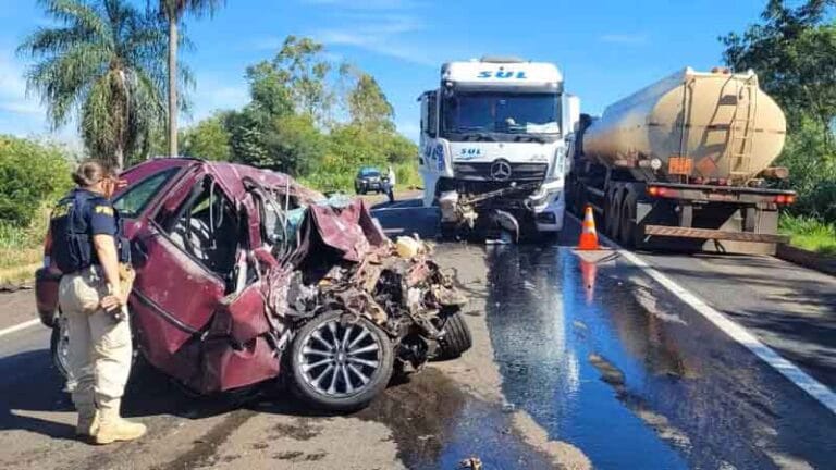 Uma pessoa morreu em um acidente envolvendo carro Volkswagen Gol e caminhão na manhã desta segunda-feira (22), na BR-376, em Paranavaí, no noroeste do Paraná.