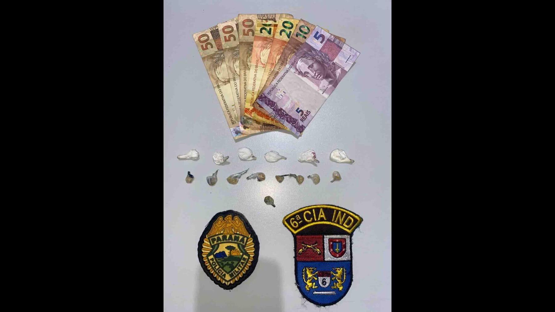 A drogas e o dinheiro foram apreendidos com o menor e dentro da residência. O infrator foi encaminhado para a 53ª Delegacia de Polícia de Faxinal.