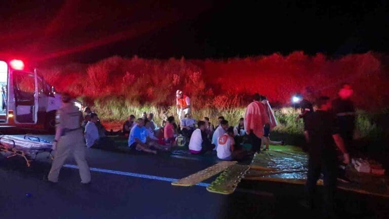Segundo a corporação, a batida envolveu 27 pessoas no ônibus, sendo que 16 foram hospitalizadas – três em estado grave – e 11 recusaram encaminhamento médico no local após atendimento dos socorristas.
