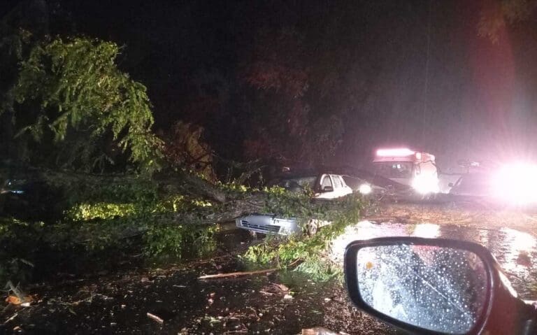 Conforme o boletim de ocorrência, a equipe policial, em deslocamento para o município de Jardim Alegre se deparou com um acidente de trânsito, onde uma árvore caiu em cima de um veículo Corsa prata, conduzido por um homem