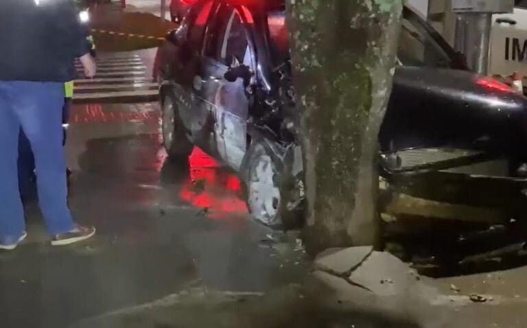 Segundo informações, o veículo descia pela Rua Nereu Ramos em alta velocidade quando o motorista perdeu o controle da direção, subiu na calçada ainda do outro lado da rua e acabou colidindo contra uma árvore.