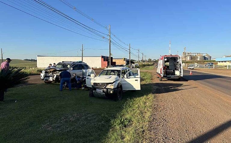 Uma batida entre duas caminhonetes deixou duas pessoas feridas na manhã desta segunda-feira (26) na PR-082, em São João do Ivaí.