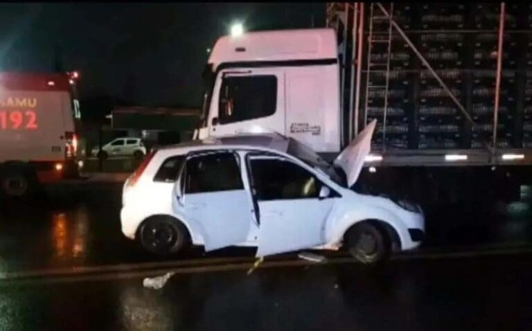 Bebê de 40 dias morre após carro ser arrastado por caminhão na BR-277