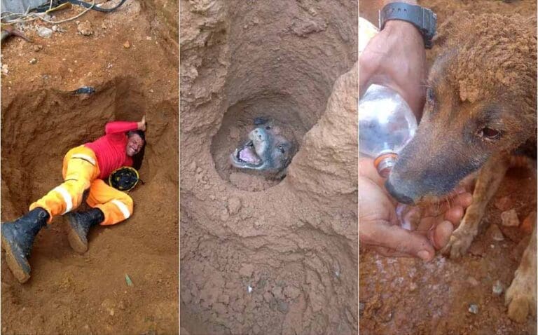Para tirar “Sargento” do buraco, as autoridades precisaram ir mais longe e usaram ferramentas de sapa, picareta, pás e cavadeira de boca para criar um buraco paralelo. Após mais de três horas, o cãozinho foi alcançado e resgatado.