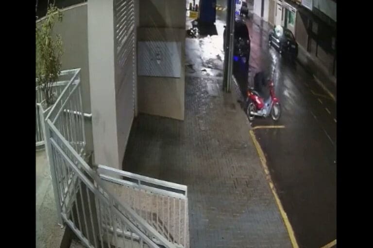 Câmera de segurança da região flagraram o momento em que o veículo é furtado. Durante a ação, o suspeito aparece e em menos de um minuto, sai empurrando a moto furtada.