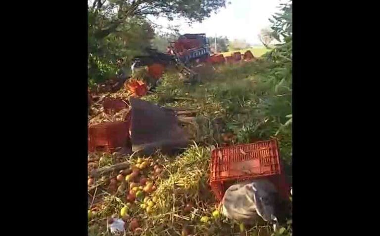 Um caminhão carregado com tomates saiu da pista e colidiu contra uma árvore num acidente na PR-466 em Lidianópolis, por volta das 17 horas desta quarta-feira (20). O acidente foi na localidade conhecida como Biquinha a aproximadamente 500 metros do Posto da Polícia Rodoviária do Porto Ubá.