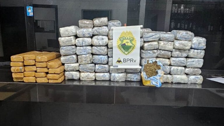 A Polícia Rodoviária Estadual (PR) foi chamada. Durante a checagem na carroceria do caminhão, os policiais encontraram sob uma lona 21,4 kg de maconha prensada e 60,2 kg de skank. Segundo a estimativa da polícia, a carga é avaliada em aproximadamente R$ 1,5 milhão,