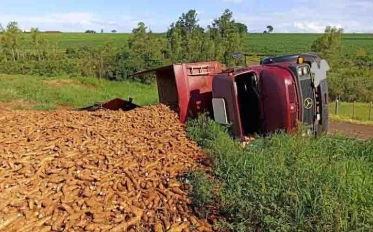 Uma criança, de 6 anos de idade, ficou gravemente ferido após ter sido atropelado por um caminhão desgovernado no interior do Paraná, na tarde de terça-feira (21). O veículo, que estava carregado com mandioca, ainda bateu em outro carro e tombou.