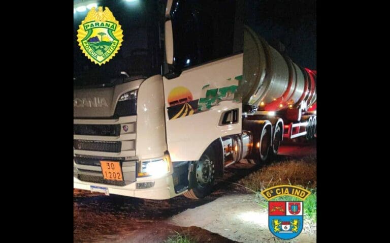A 6ª Companhia Independente da Polícia Militar (6ª CIPM) confirmou que o caminhão Scania/R540 A6X4 roubado na BR-376, na região de Ponta Grossa, foi encontrado por volta da meia noite de terça-feira (7), na PR-272 próximo a cidade de Faxinal.