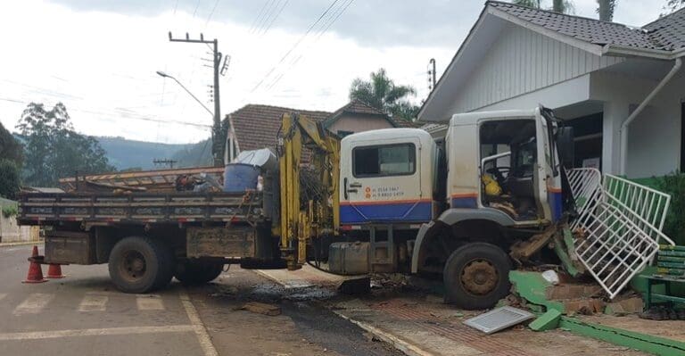 Caminhão sem freio atinge posto de saúde e deixa cinco feridos