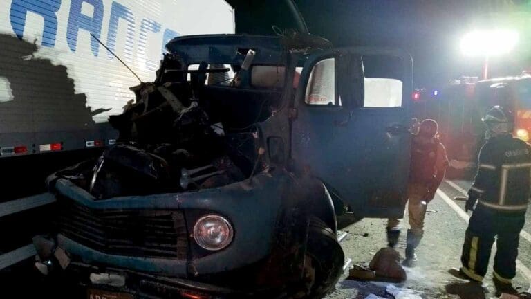 A cabine do veículo, que colidiu na traseira de outro caminhão – esse com placas de Santa Catarina -, ficou destruída. A pista no sentido a Maringá está interditada. A Polícia Rodoviária Estadual (PRE) está no local para o controle do tráfego e apurar as causas da batida.