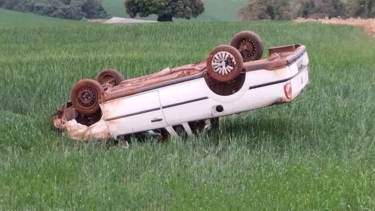 Segundo informações preliminares, o motorista de uma caminhonete Saveiro teria perdido o controle do veículo, saiu da pista e capotou só parando em uma plantação de trigo.