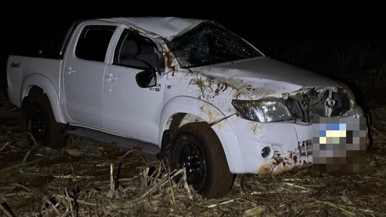 O veículo, com placas de Ivaiporã, seguia sentido Lunardelli quando o motorista perdeu o controle da direção. A Hilux invadiu a pista contrária e parou em uma plantação.