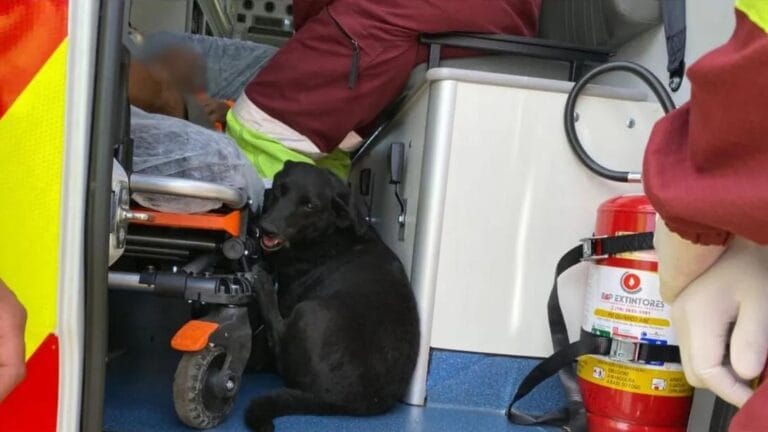 A vítima não tinha ferimentos, mas foi levada para avaliação médica. Ao perceber que o tutor estava dentro da ambulância, o cão subiu no veículo e permaneceu ao lado dele até o encaminhamento ao hospital.