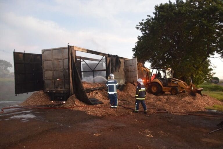 O veículo transportava serragem de madeira e a carreta foi atingida pelo fogo em praticamente toda sua totalidade. A carga estava sendo transportada para Maringá. O motorista nada sofreu.
