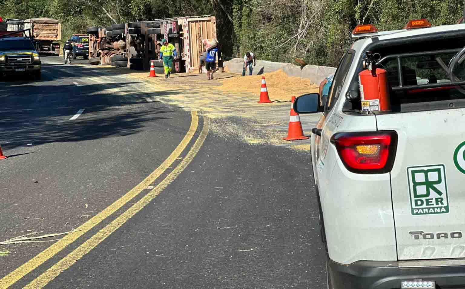 O caminhão seguia sentido a Curitiba e acabou tombando. Grande parte da soja espalhou pela rodovia e os moradores da região saquearam a carga.