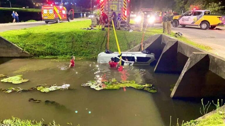 Dois homens morreram após o carro em que eles estavam cair de uma ponte no lago do Parque Lacustre, em Castro, nos Campos Gerais do Paraná, segundo o Corpo de Bombeiros. O caso aconteceu na noite de quarta-feira (28).