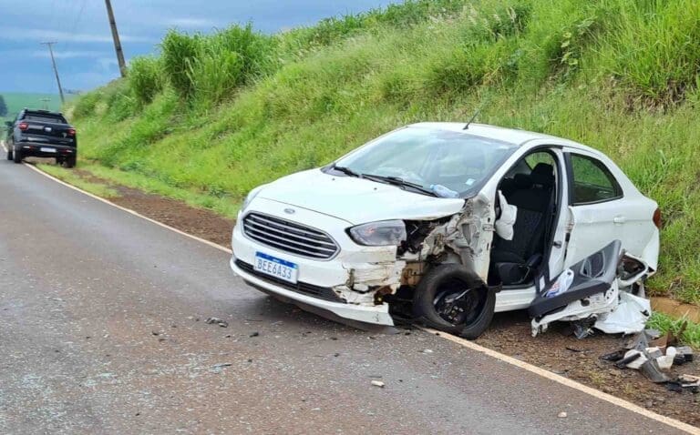 A batida foi com um caminhão com placas de Borrazópolis na altura do Bairro Lajeadão. Com a batida o carro rodou na pista e ficou atravessado no acostamento