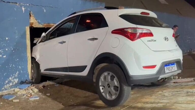 O automóvel só parou após atingir o muro do Colégio Estadual Professor Francisco Lima da Silva. Por pouco, o carro não caiu na quadra de esportes.