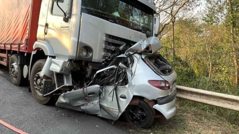 Carro fica destruído e motorista morre após colisão com carreta no PR-182