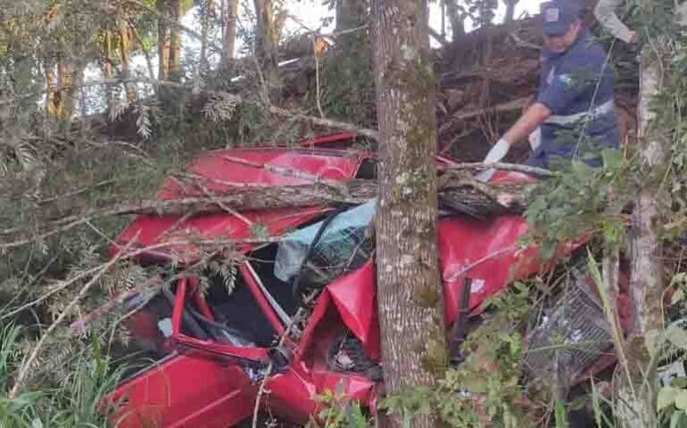 Carro fica destruído em acidente na PR-487, em Manoel Ribas