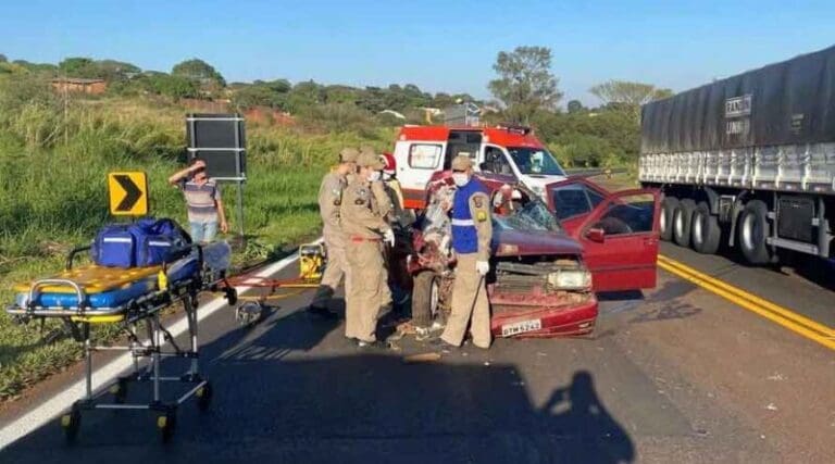 Um casal ficou ferido em grave acidente no início da manhã desta terça-feira (12) na PR-170, em trecho do Contorno Norte, em Apucarana (PR). A colisão envolveu um caminhão de médio porte e um veículo Fiat Tipo nas proximidades do antigo Centro de Tradições Gaúchas (CTG).