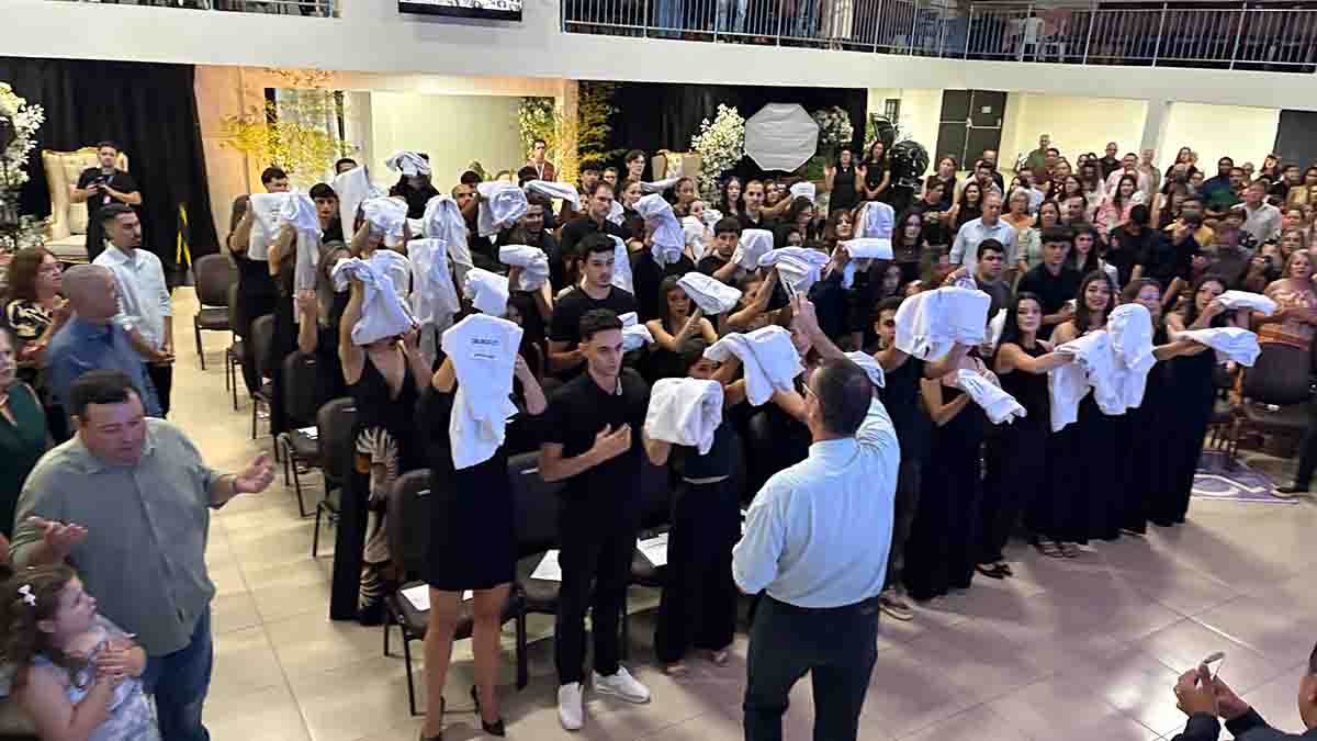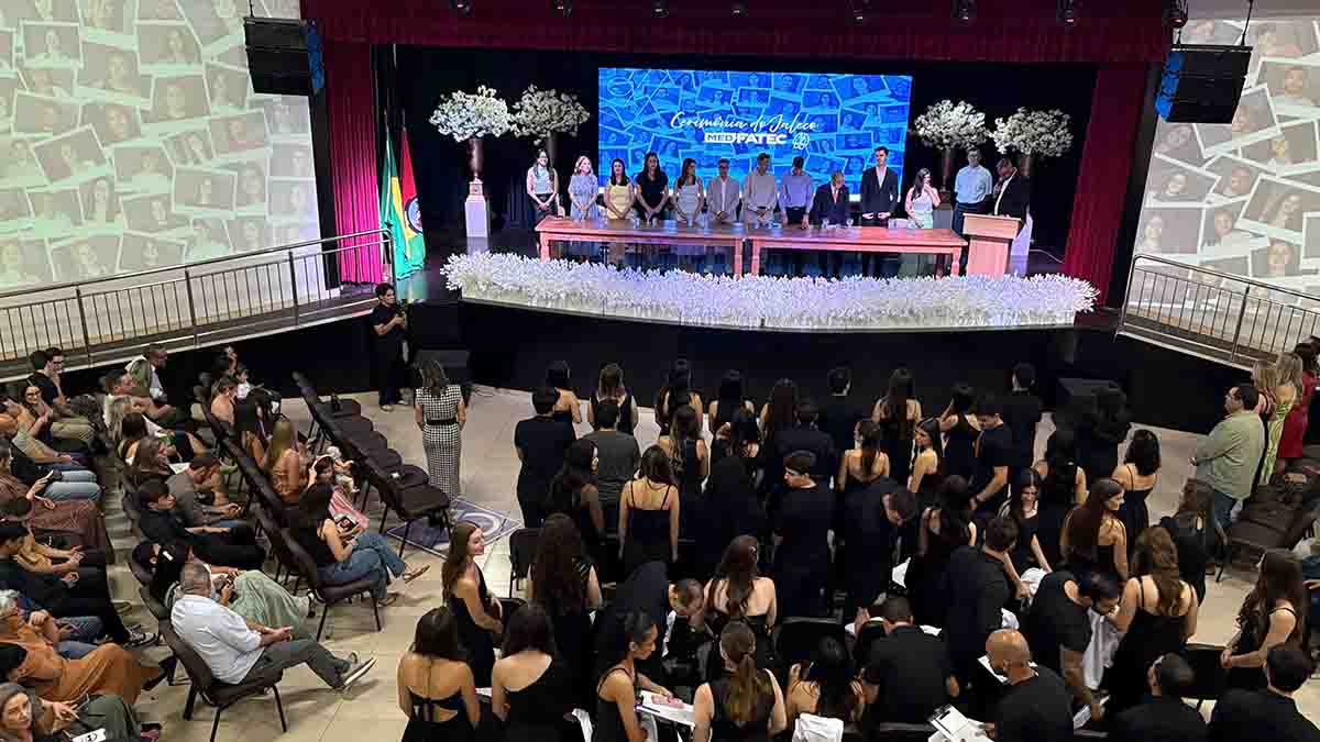 A cerimônia do jaleco é considerada um dos primeiros ritos da formação médica e simboliza o compromisso dos estudantes com a ética, o cuidado e a responsabilidade com a vida. A solenidade também contou com um momento ecumênico, conduzido pela pastora Cleire Plaza — mãe do acadêmico Lucas Plaza — e pelo padre Célio Marcos Tarozo.