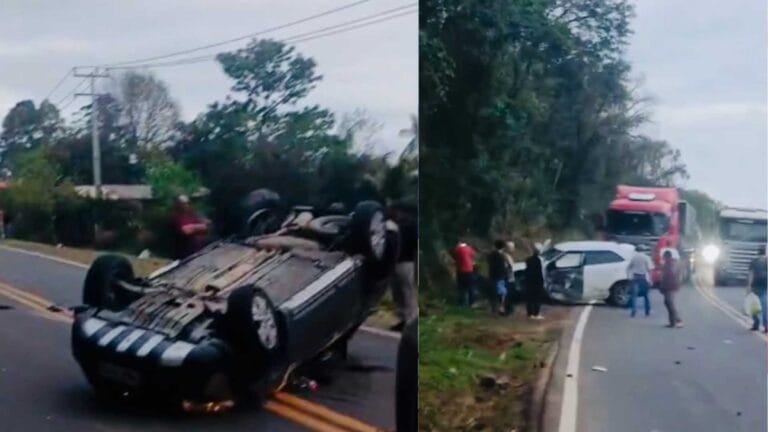 De acordo com informações dos bombeiros, dois carros se envolveram no acidente, um Fiat Palio Adventure, cor cinza, e um Hyundai Creta, cor branca.