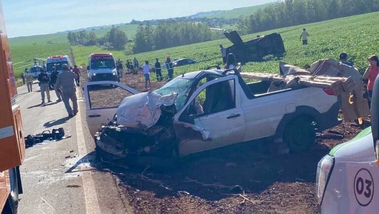 Um acidente entre uma Toyota Hilux e uma Fiat Strada deixou quatro pessoas feridas na manhã desta quarta-feira (24), na BR-369, entre Jandaia do Sul e Bom Sucesso, no norte do Paraná.