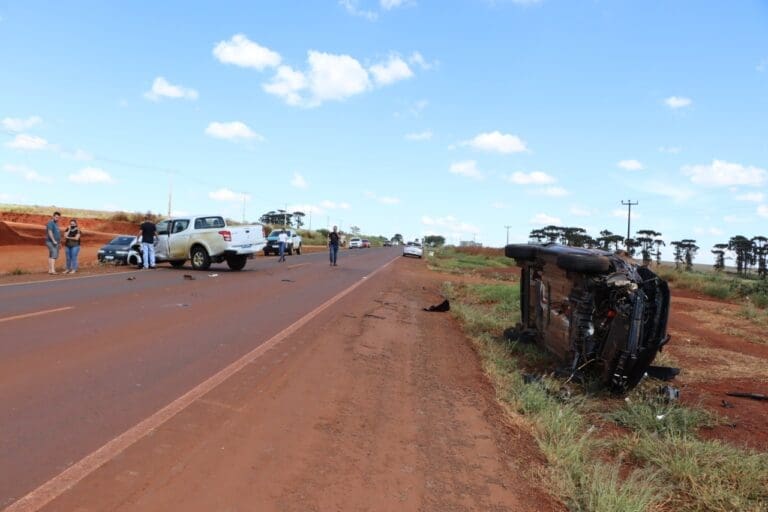 A colisão envolveu uma camionete do Meio Ambiente de Ivaiporã e uma Eco Sport da cidade de Manoel Ribas que capotou.