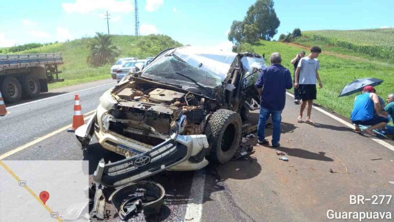 De acordo com a Polícia Rodoviária Estadual (PRF), o acidente ocorreu por volta das 14 horas, no Km 365 da BR-277. Os veículos envolvidos foram um caminhão Mercedes-Benz vermelho, com placas de Marechal Cândido Rondon, e uma Toyota Hilux branca, com placas de Guarapuava.