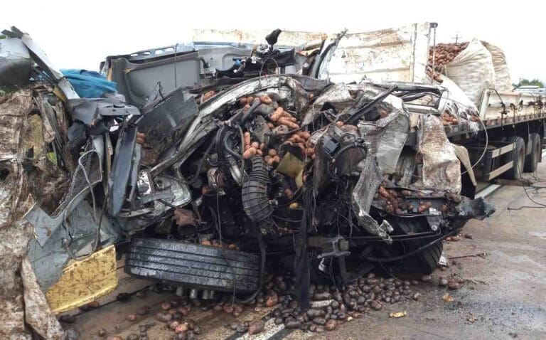 De acordo com a Polícia Rodoviária Estadual (PRE), a colisão frontal envolveu uma carreta Mercedes-Benz/Atron com placas de Caçador/SC carregado com batatas e um caminhão DAF com placas de Capinzal/SC.