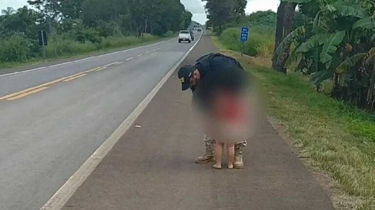 Uma criança de 4 anos, vestido com uma camiseta e fraldas, foi resgatada na tarde deste domingo (14) após ser encontrado por agentes da Polícia Rodoviária Federal (PRF) andando sozinho no meio da pista da BR-153, no trecho que liga Uruaçu a Porangatu, região norte de Goiás. De acordo com a PRF, o local é caracterizado por tráfego de alta velocidade.