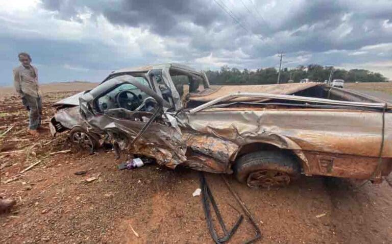 Dois carros que vinham na direção contrária conseguiram desviar. O motorista da SW4 não conseguiu sair a tempo, e bateu na lateral da Saveiro, com o impacto a Saveiro capotou várias vezes.