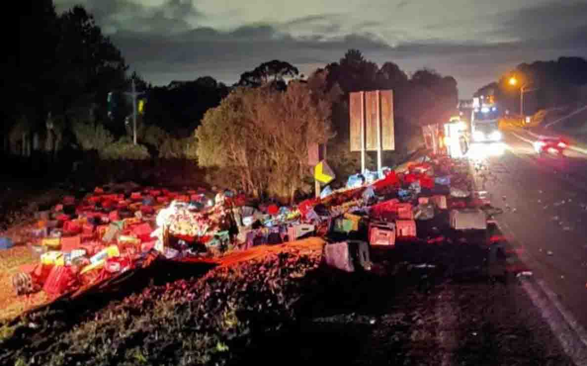 Duas pessoas morreram na madrugada desta segunda-feira (5), no km 144 da BR-116 na Região Metropolitana de Curitiba (RMC), depois que um caminhão tombou sobre uma camionete. O acidente foi na região de Mandirituba.
