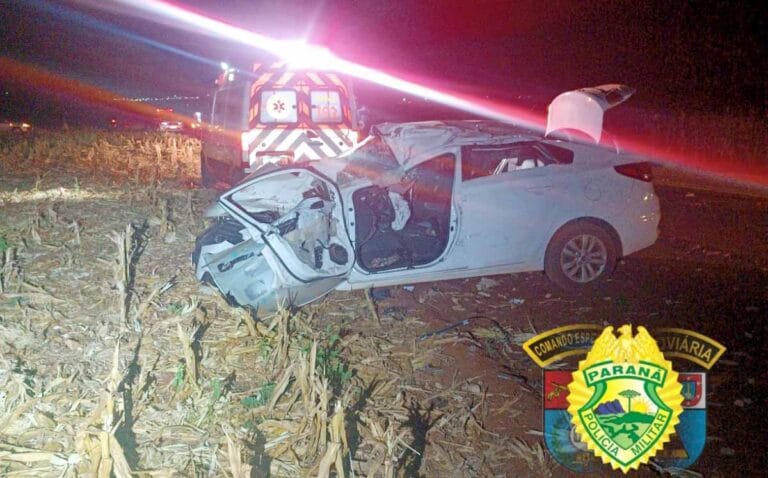 Um grave acidente na PR-437, em Primeiro de Maio no Norte do Paraná, resultou na morte de duas pessoas na noite de quinta-feira (31). A colisão traseira envolveu um Hyundai HB20 e um caminhão Mercedes-Benz L 1113.