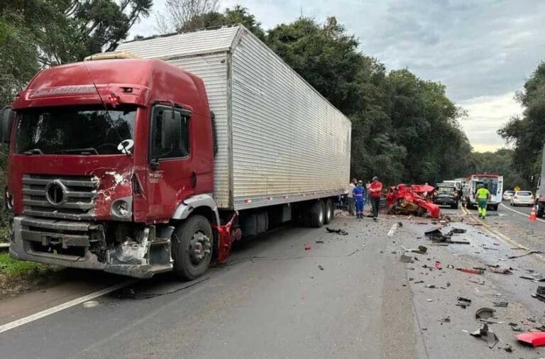 Na manhã desta quarta-feira (26), duas pessoas morreram e uma ficou gravemente ferida em um acidente. Os veículos envolvidos foram um caminhão guincho, uma carreta e um carro, na BR-277, em Virmond, região central do Paraná.