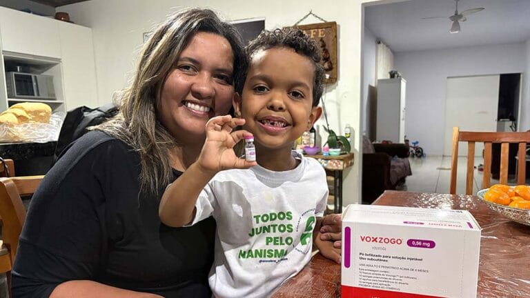 O tratamento avançou em 2023, com a chegada do medicamento Voxzogo, aprovado pela Anvisa no fim de 2022. O remédio, de alto custo, foi obtido pela família por meio de decisão judicial. Ele estimula o crescimento ósseo, melhora a proporção corporal e reduz complicações, como compressão craniana e dificuldades respiratórias.