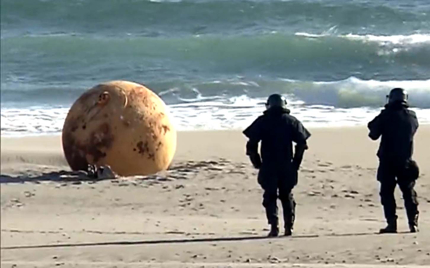 Uma esfera com cerca de 1,5 metro foi encontrada na manhã desta terça-feira (21), na praia de Enshuhama, Nishi-ku Tsuboi-cho, cidade de Hamamatsu (Shizuoka), no Japão. A mulher que localizou o objeto disse aos policiais que havia um grande objeto redondo na areia e a equipe foi até o local.