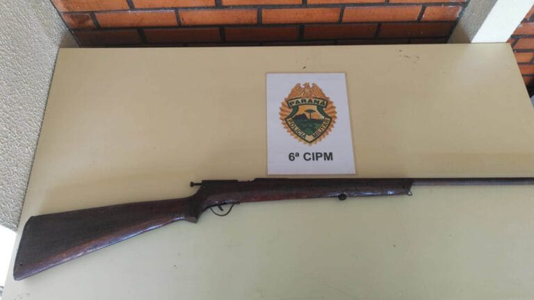 A PM foi acionada e o homem indicou a localização da arma, uma espingarda do tipo “puxa-fieira”. Não foi possível identificar a marca, o modelo ou o calibre do armamento.