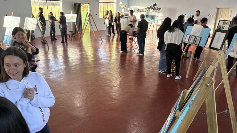 Érick Fernando de Souza Silvestre, morador de Jardim Alegre expôs desenhos em pontilhismo e realismo pela primeira vez. “Durante boa parte da minha vida eu sonhei com isso. Uma exposição com vários artistas daqui e da região. É um sonho realizado”, disse.