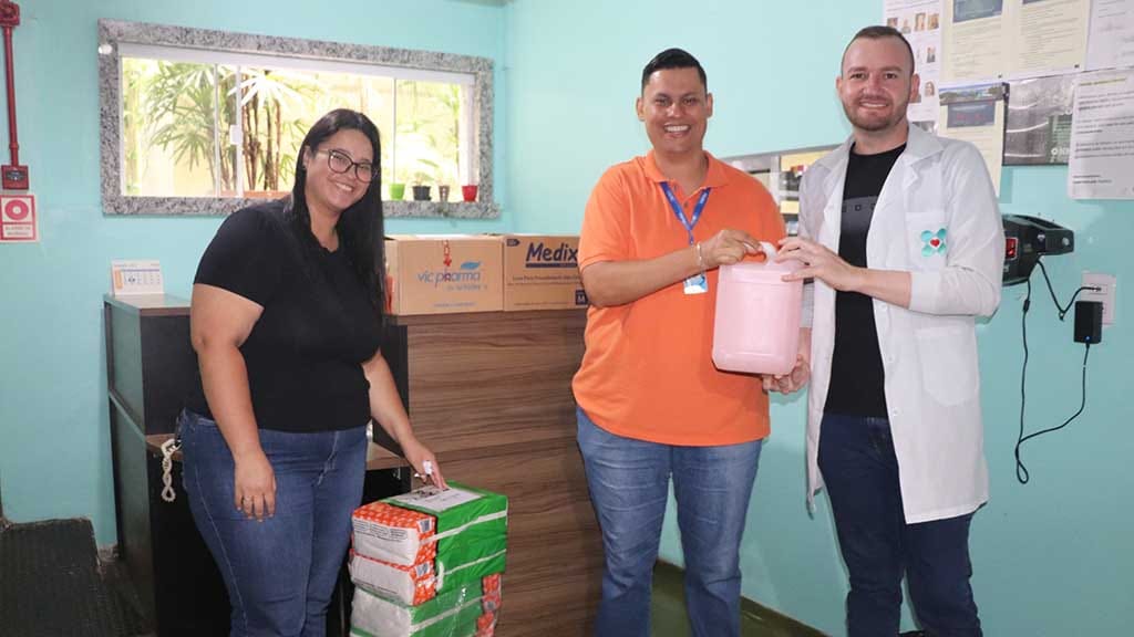 A reposição está vinculada à contrapartida da Fatec Ivaiporã para que estudantes de Medicina realizem práticas supervisionadas tanto no HR quanto no ISBJ. Foram entregues álcool em gel, sabonete, sabão líquido, luvas, papel toalha e outros itens essenciais ao atendimento. (fotos abaixo)