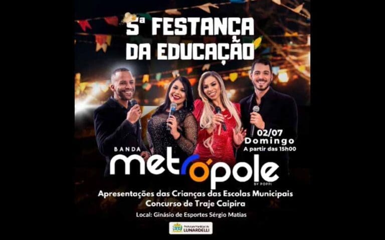 Uma típica festa caipira vai movimentar neste final de semana o município de Lunardelli. A Prefeitura do município promove neste sábado (30) e domingo (1) a 5 Festança da Educação. O evento, que traz shows gratuitos, apresentações da comunidade, concurso de traje caipira e comida típica será realizado no ginásio de esportes Sérgio Matias.